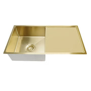 BRUSHED BRONZE GOLD KITCHEN SINK - SINGLE BOWL & DRAINBOARD 840 X 440